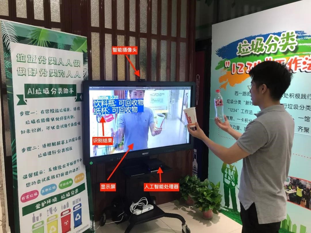 項目啟動兩周后,視覺AI垃圾分類系統(tǒng)初步成型,并在新城區(qū)西一路社區(qū)垃圾分類體驗館進(jìn)行了實踐投放應(yīng)用,當(dāng)場引發(fā)廣大市民的圍觀熱議,并被陜西衛(wèi)視播放報道。系統(tǒng)目前支持紙杯、手紙、紙箱、廢紙盒、易拉罐、筆、電池、瓶子、快遞飯盒、辦公用紙和零食袋等近20種垃圾種類的高精度識別,識別數(shù)量還在不斷增長中。對于能夠滿足需求的某些特定場所區(qū)域,如科技館、博物館、體驗館、商場等場所都可以引進(jìn)使用,現(xiàn)已接到一些訂單。